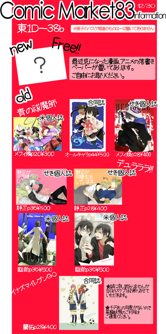 ご自由にお取りください!神リナ本はありませんが米と玲さんの新刊とその他ジャンルの既刊だったら
