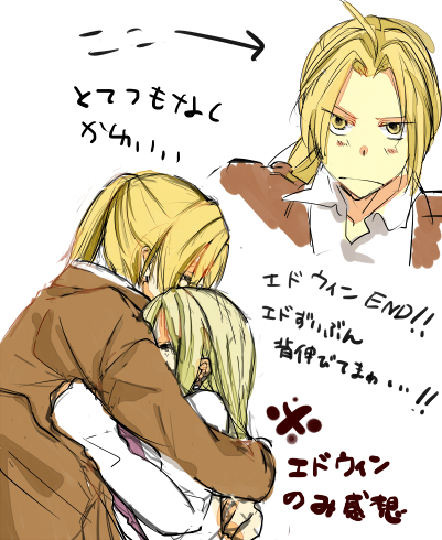 全部あげるって言って恥ずかしくなって訂正しているウィンリィ可愛すぎ。そして平然と抱きしめるエドのことでぐああああてなった。エドのガタイのよさと伸びた身長・・・!いいね!行ってくると行ってらっしゃいでもう夫婦だね。